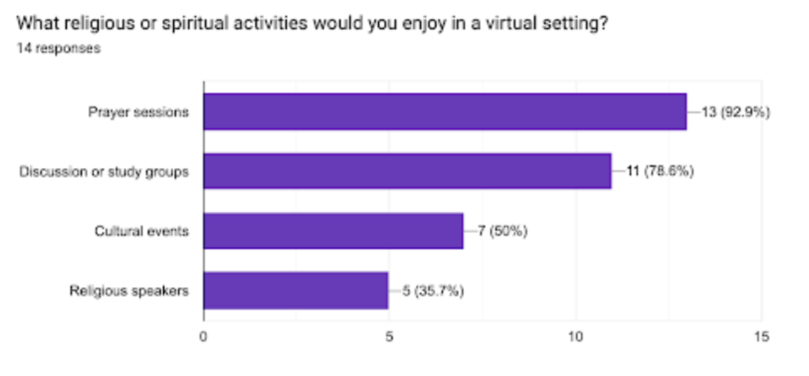 The development of this project followed an iterative design cycle, beginning with the release of low-fidelity prototypesthat captured basic interface layouts and user flows. These early prototypes were then tested with potential users, and data was collected through questionnaires and feedback sessions, as shown in the figures above. This process not only highlighted the most valued features, such as larger text options, simple navigation, and prayer or discussion sessions, but also revealed areas of redundancy and features that were less impactful, allowing the team to refine the design before moving forward. Each round of testing and revision mirrored the principles of agile work practices, where continuous feedback directly informed incremental improvements. By cycling through ideation, prototyping, testing, and refinement, the project reflected real-world development processes, demonstrating how user-centred design, iterative testing, and adaptability are essential for delivering solutions that are both functional and aligned with stakeholder needs. The survey data visualised above served as a practical guide for prioritising usability and accessibility, ensuring that subsequent high-fidelity prototypes were tailored to the actual requirements of the target audience.